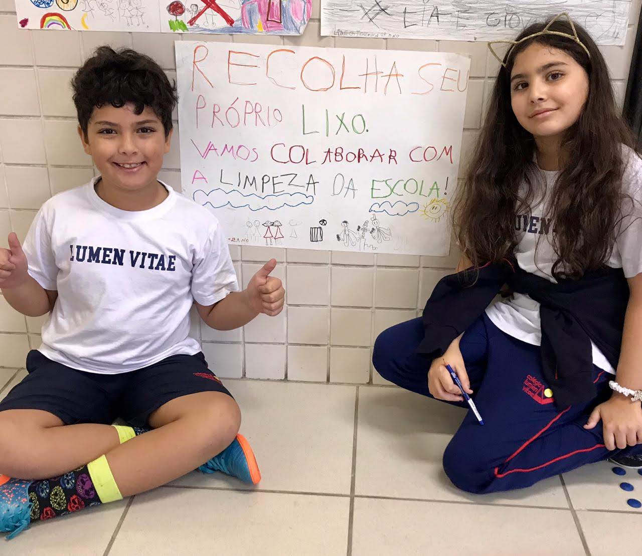 Pensando nisso, os alunos do 2º Ano confeccionaram cartazes em duplas a fim de conscientizar a todos sobre como cada um pode colaborar para termos um colégio limpo e melhorar a convivência em nosso dia a dia.