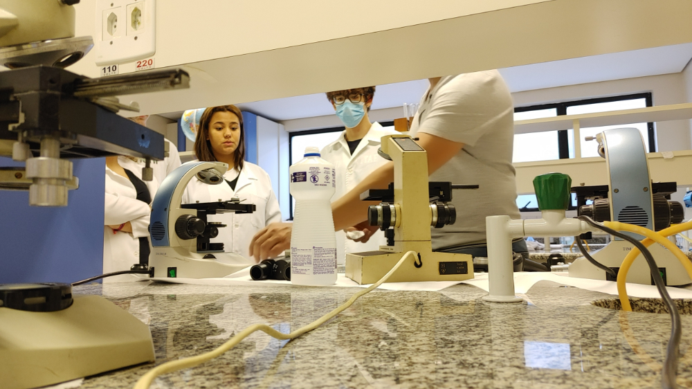 Você sabia que a manutenção dos microscópios utilizados nas aulas de biologia, microbiologia, saneamento básico e ciências é realizada pelos alunos do Colégio? Não? Então, sob a supervisão do professor responsável Claudio Costa, os alunos da 1ª série do Ensino Médio realizam essa atividade, porque os vírus podem permanecer por horas e até dias em superfícies como metal, vidro ou plástico. Consequentemente, é importante limpar e desinfetar os microscópios regularmente para ajudar a manter os estudantes no laboratório seguros e saudáveis.