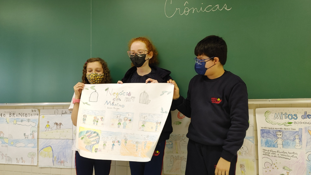 Os alunos do 5° ano estudaram sobre crônicas neste trimestre. Para enriquecer esse trabalho, leram "Crônicas", Editora Ática, de autores consagrados, como Carlos Drummond de Andrade, Fernando Sabino, Paulo Mendes Campos e Rubem Braga. Escreveram crônicas e, para finalizar o trabalho, em grupos, escolheram algumas delas para apresentar para a classe, pois são histórias do nosso cotidiano, contadas com graça e humor. Vamos rir um pouco?