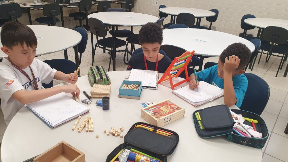 Unidade, dezena, centena... Quanto aprendizado! Na semana passada, nossos alunos do 3° B foram à Biblioteca fazer desafios matemáticos. Trabalharam em grupo, com o auxílio do Ábaco e do Material Dourado. Parabéns, alunos queridos! Quanto orgulho de vocês!