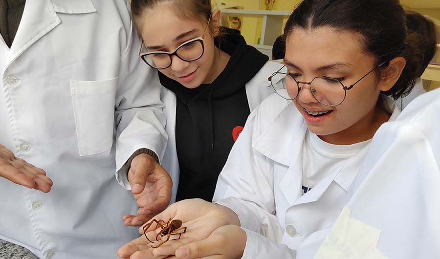 As aulas práticas no laboratório enriquecem o conhecimento dos alunos, proporcionam sempre um contato com o conhecimento prático e desenvolvem habilidades fundamentais na construção do conhecimento dos estudantes. Nessa aula de Ciências, os alunos puderam observar a evolução dos invertebrados, de poríferos a equinodermos.