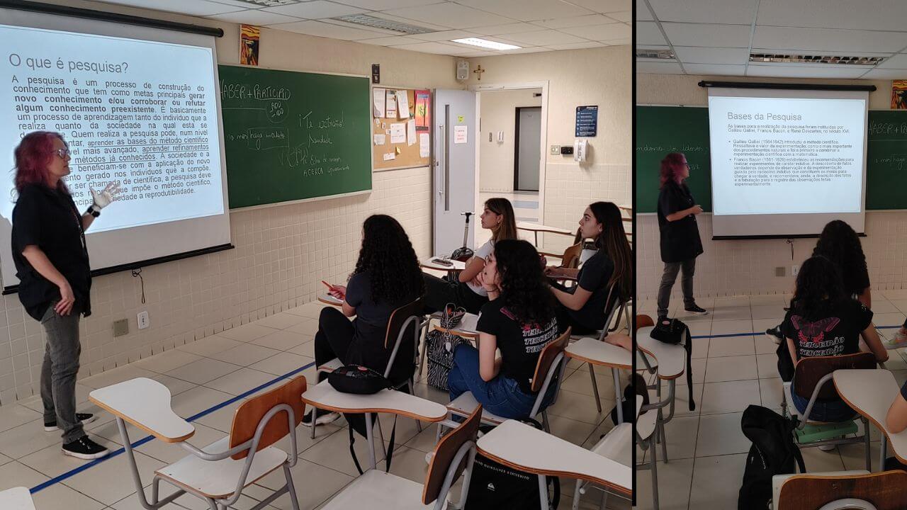 O que é a pesquisa? Quais são as bases da pesquisa? Por que pesquisamos? Questionamentos e temas como esses são discutidos durante as aulas do curso de Metodologia Científica para o Ensino Médio. Visando a preparação para uma prática tão vivida no mundo acadêmico, especialmente nas Universidades e sob a orientação da Professora Katiane, da disciplina de História, os alunos deram o início ao curso que vai orientá-los no planejamento e na construção de um trabalho científico.