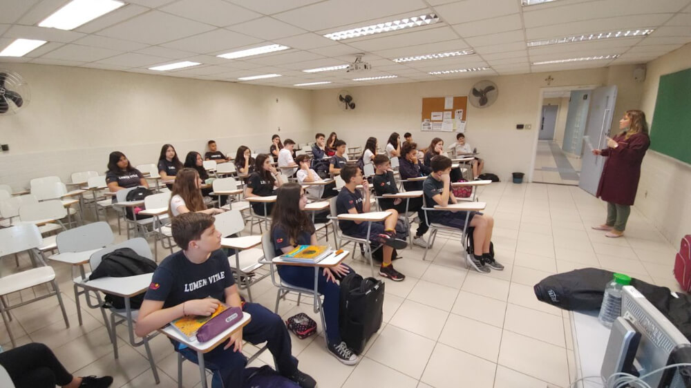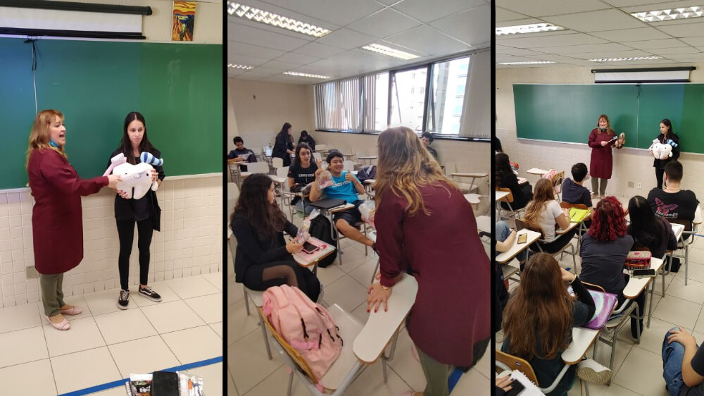 Os alunos do Ensino Fundamental II e do Médio participaram, ontem, de uma vivência a respeito da importância da escovação e da higiene bucal proporcionada pela Dra. Graziella Comenalli dra_grazielladentista, mãe do nosso aluno Davi, do 1º ano. Ao final da vivência, cada aluno recebeu um kit com pasta e escova de dentes.