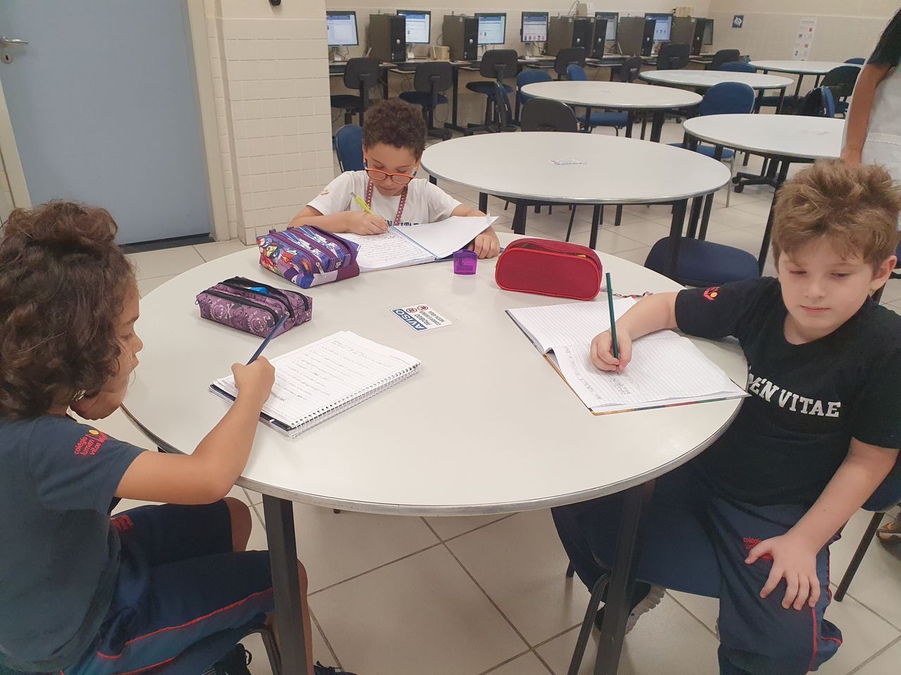 As turmas do 3º ano do Ensino Fundamental do Colégio Lumen, fizeram uma visita muito especial à Biblioteca. Com o auxílio da Bibliotecária Lilian Gentil, viram livros raros, mapas, como é feita a catalogação e divisão dos materiais, além de outras curiosidades; conheceram as salas de estudo, os terminais para pesquisa e o acervo. Os alunos do 3° A realizaram a leitura de algumas fábulas de Esopo, depois fizeram o registro da fábula preferida com um breve texto e uma ilustração, já os alunos do 3º ano B fizeram uma atividade de contação de histórias compartilhada. Foi uma visita muito produtiva, as crianças adoraram e querem voltar. Vamos conferir algumas imagens desse momento tão bacana?
