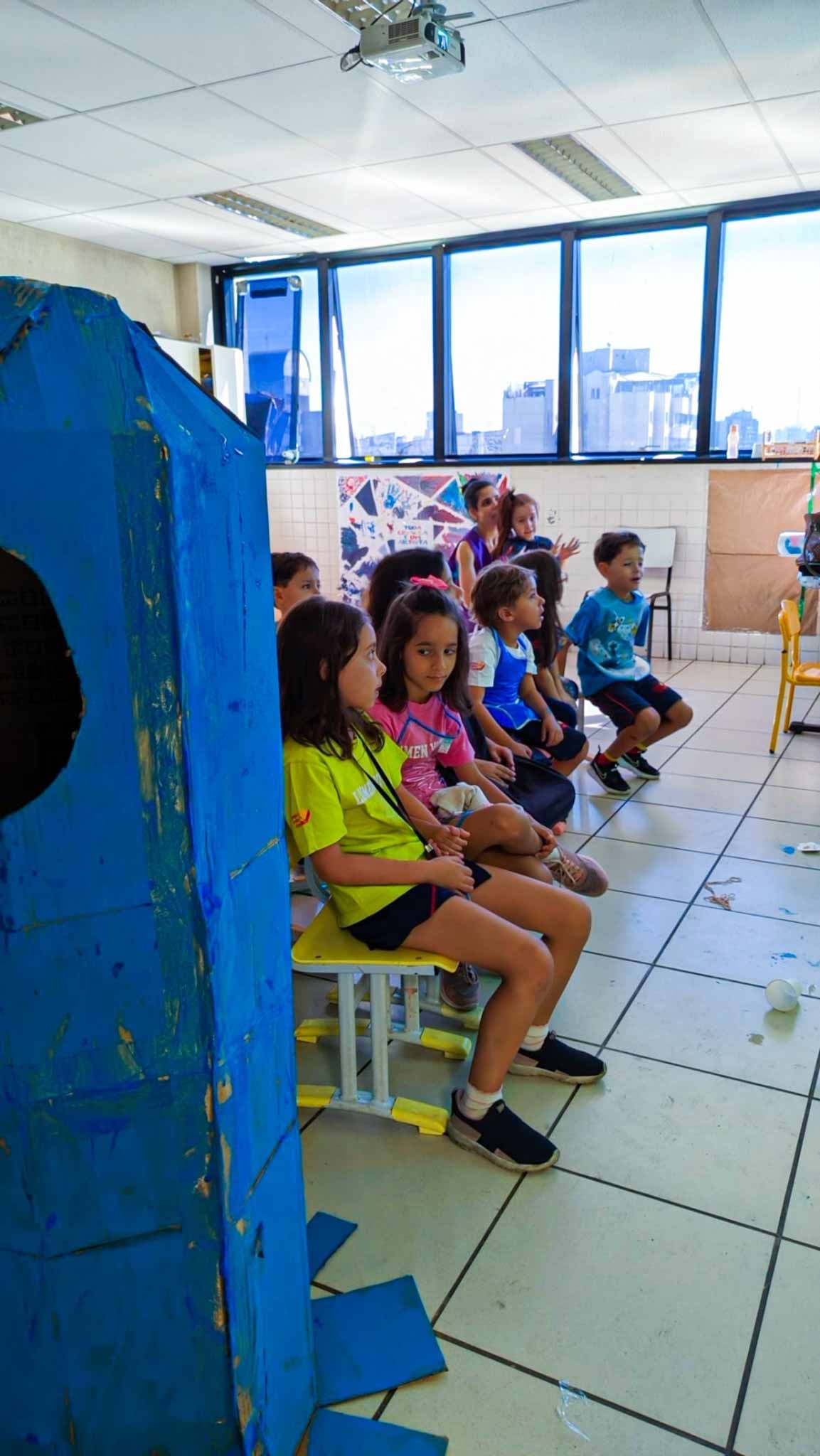 Em meio ao projeto 'O Homem que Amava Caixas', nossa turminha do Integral embarcou na aventura de construir e colorir um foguete totalmente feito de caixas de papelão! 🚀✨.